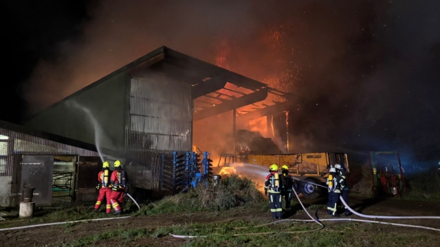 Vor Ort sollte eine Scheune mit Heu, sowie landwirtschaftlichen Maschinen brennen.