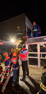 Doch die Ruhe währte nicht lange: Um 20:12 Uhr ertönte der nächste Alarm. Es ging zur Schule – auf dem Dach lag eine verletzte Person, der Rettungsdienst war bereits vor Ort. Auch hier führten die Gruppenführer sicher durch die Lage.